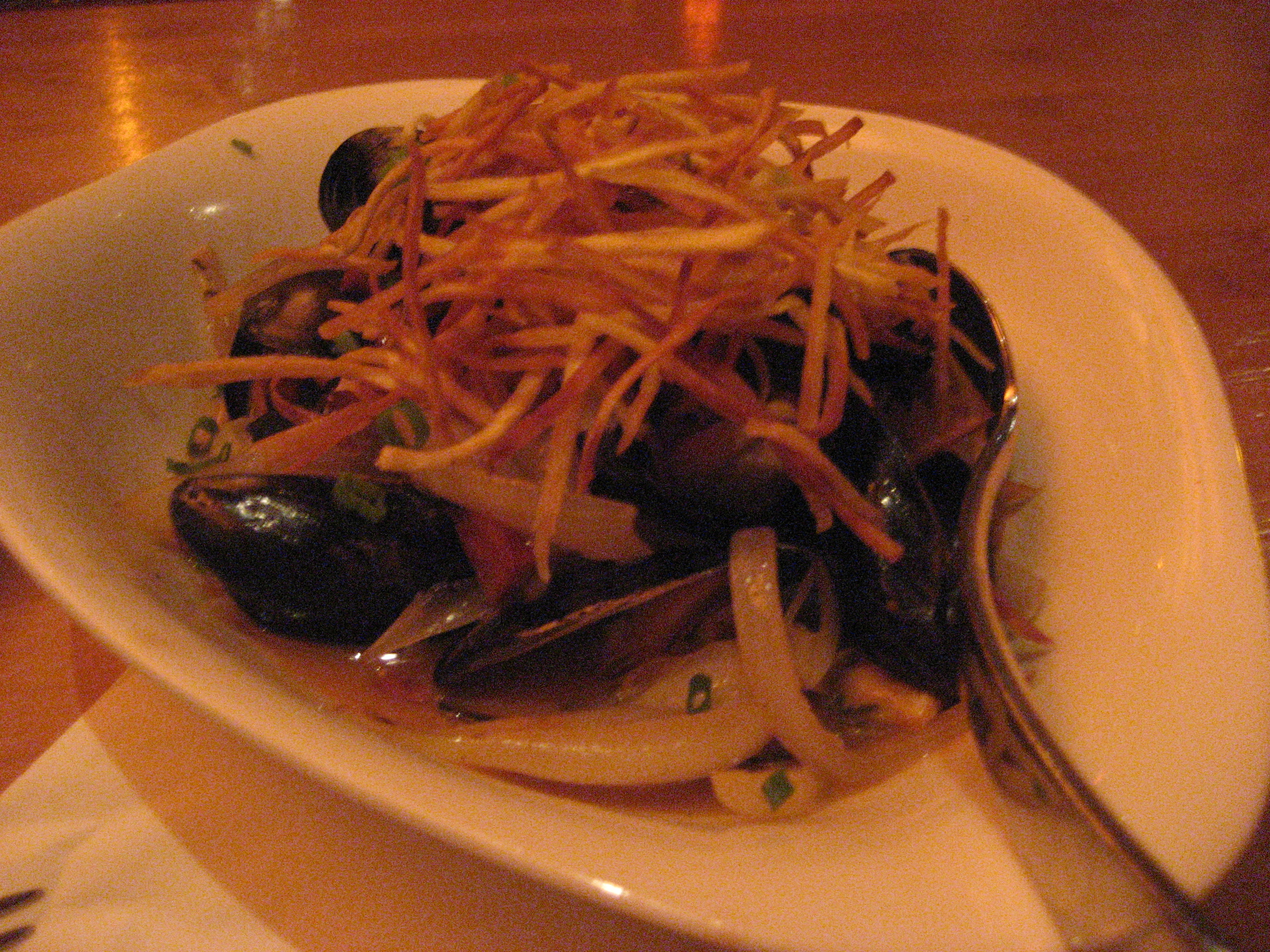I ordered a mai tai, of course, but I wasn’t all that hungry so I got the mussels with Portuguese sausage, Maui onions and shoestring potatoes. The broth was made with Kona Longboard lager and it was so savory that I had to sop it up with the bread.