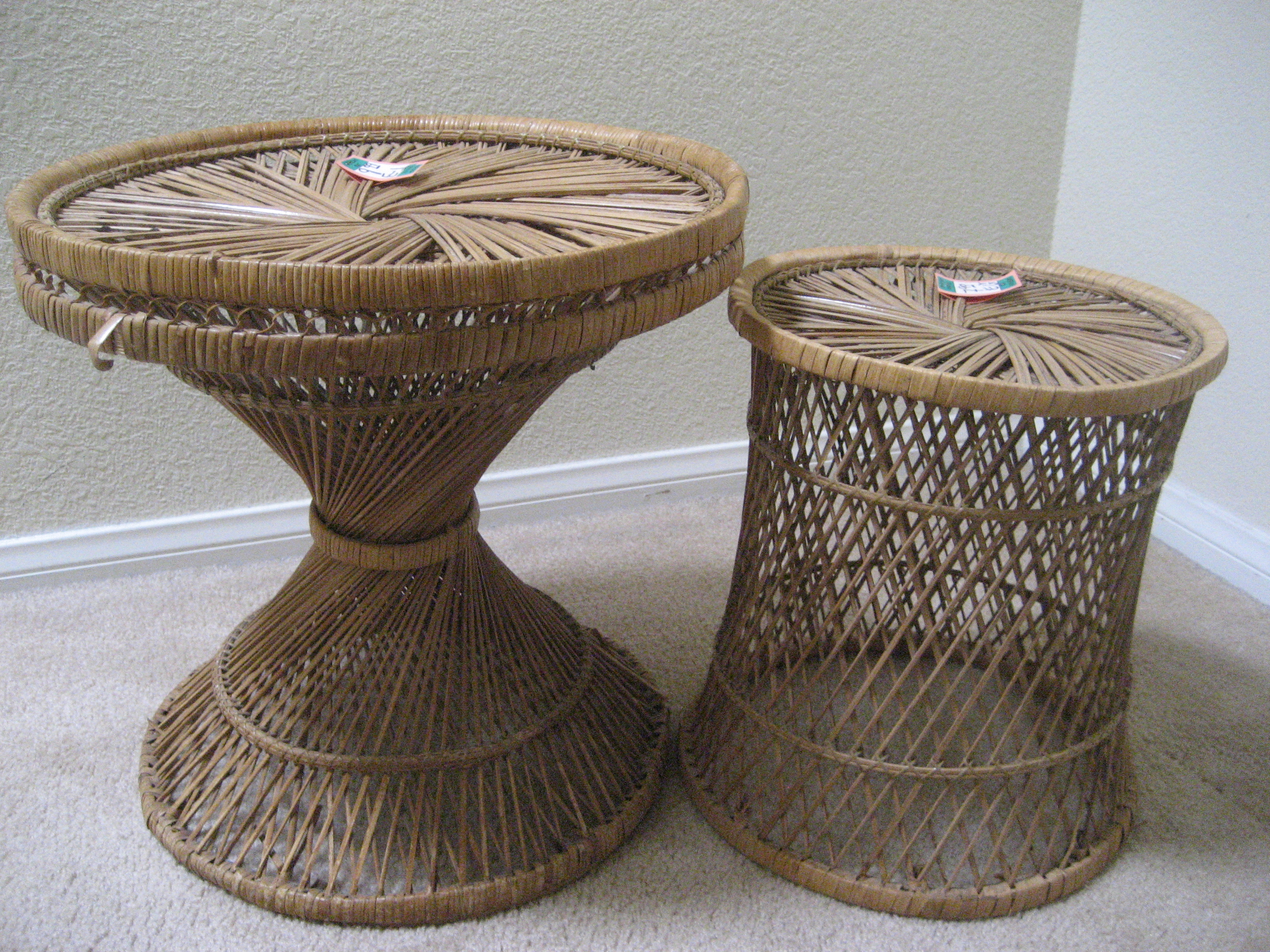 I don’t go thrift store shopping very often, so it was nice to go last weekend with CuriousLaydee (she’s a magnet for good finds). After an appointment at Frenchy’s Beauty Parlor and some pastries at Porto’s, we headed to the American Way Thrift Store in Burbank (which also happens to be near 8-Ball, Halloweentown and other neat stores). I picked up these two rattan items—and the store has special pricing on Saturdays so they were 30% off.