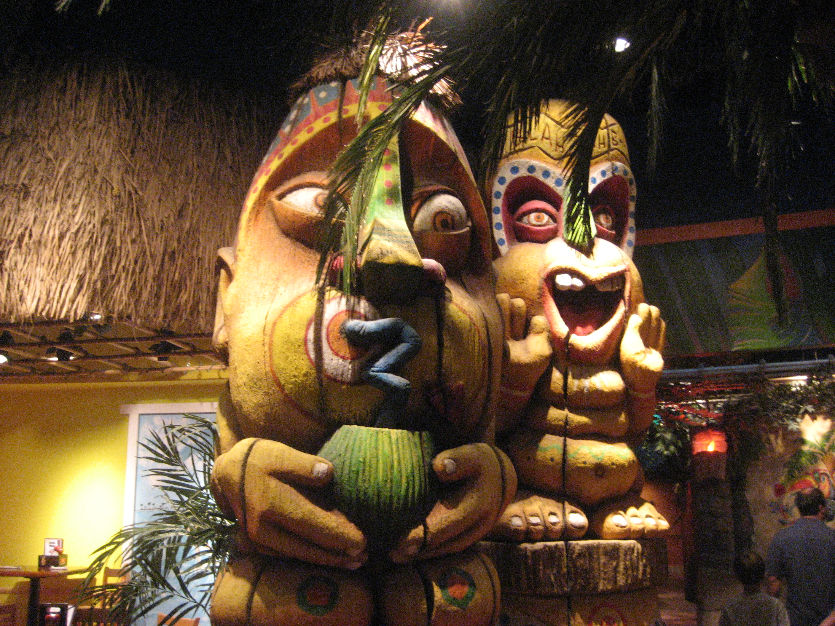 Check out these huge hideous tikis out and about. And I thought the ones at Boutiki in Disney’s Polynesian Resort were bad.