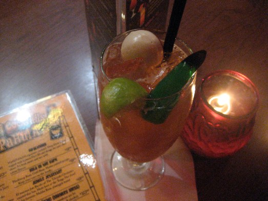 I started off my Halloween festivities over the weekend with a theme-appropriate cocktail at the Tonga Hut: The Zombie (recipe circa 1934), garnished for the occasion with a gummy eyeball and fake finger.