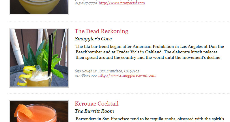Tasting Table chose 15 Bay area bars and restaurants and posted a representative recipe for each one. Here’s what they had to say about Smuggler’s Cove and the drink The Dead Reckoning: