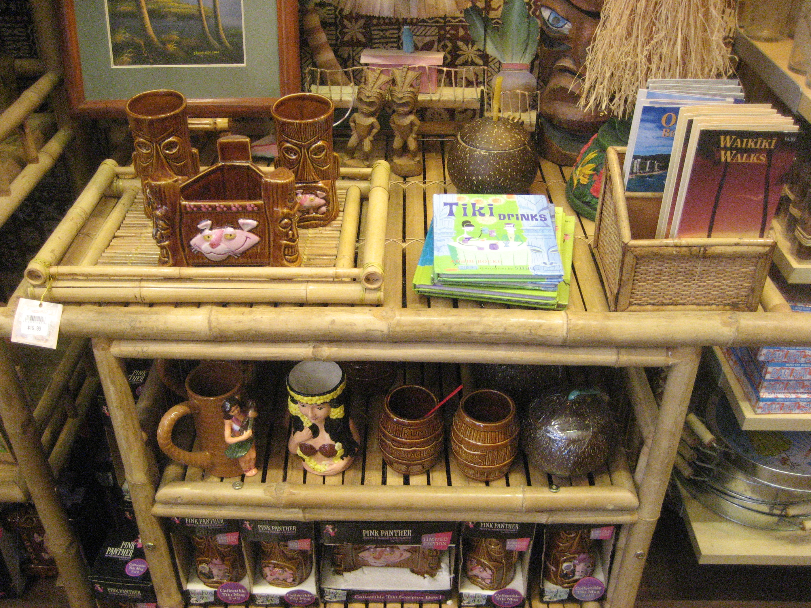 The name tipped me off that maybe the store is related to Don the Beachcomber, and they do actually stock their signature rum barrels, along with some hula girl mugs and the still ubiquitous Pink Panther themed ceramics designed by Shag.