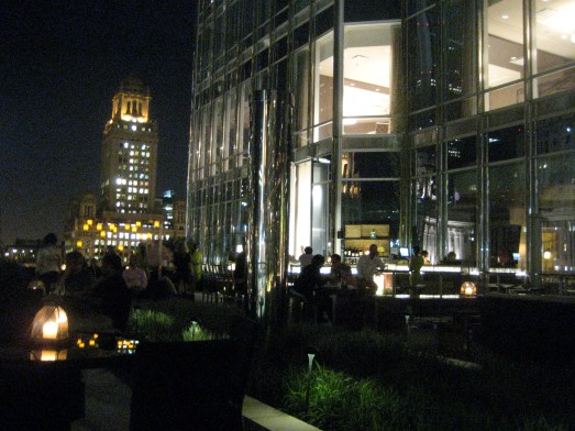 The Terrace is open until 12:30 a.m., but the kitchen closes earlier. Mr. Baseball went for the marinated beef and pineapple skewers with Thai peanut sauce (they were tasty, but twenty bucks, really?). Also on the menu were seafood platters, sushi, curries and other global eats. I can’t resist a whimsical dessert, so I got the Mai Tai Push Pop ($13) with Mai Tai sorbet, Myers’s rum and guava gelée. It was just like the push pops I remember from being a kid, except alcoholic (and expensive).
