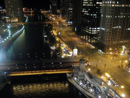 But when we did make it up to the sixteenth floor (next to restaurant Sixteen), I was absolutely blown away by the view. You could walk right up to the glass divider, with the Wrigley Building and Tribune Tower front and center, and the river below.