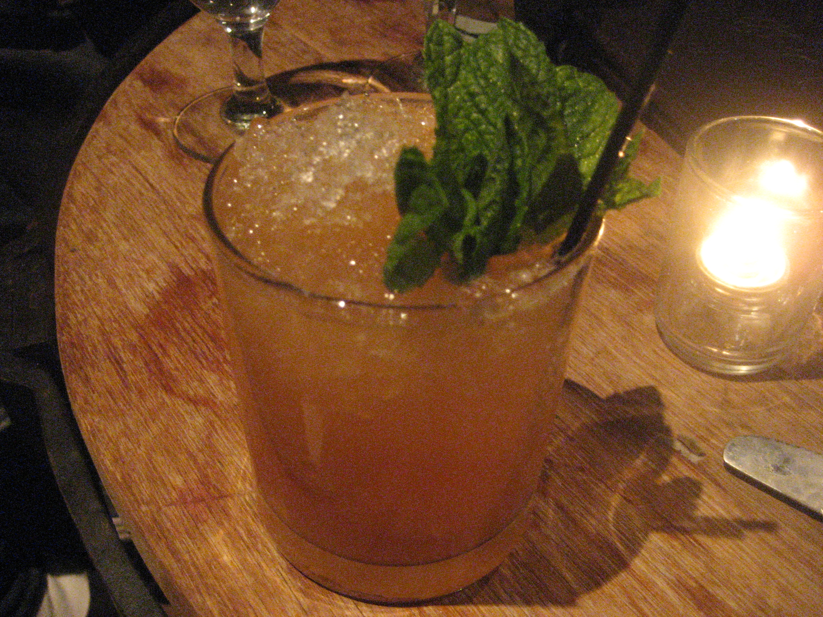 Also featured is another Don the Beachcomber creation, the QB Cooler ($14), described thusly: “QB stands for Quiet Birdmen, a drinking fraternity of aviators founded by seven WWI pilots in 1921. However, this particular little drink was created by Donn Beach at his Hollywood bar in 1937, and was rumored to be the inspiration for a famous drink created by Tiki legend Trader Vic.” 1886 makes it with a three rum blend, falernum, honey & ginger syrups, lime & orange juice. However, for me the ginger was a bit too overpowering to notice much of a resemblance to the Mai Tai in this case.