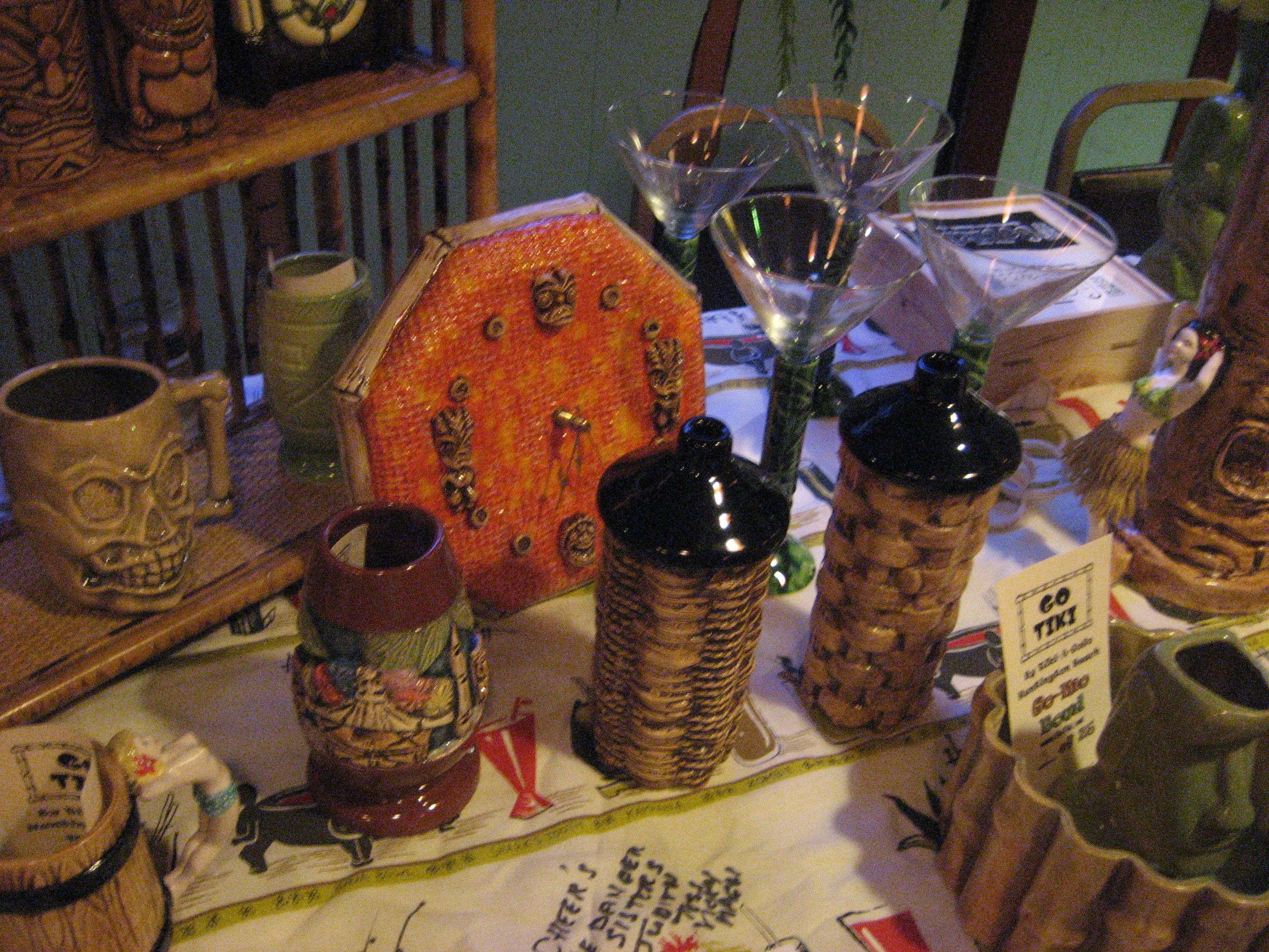 Before you browse the art, you should watch Eric Minh Swenson’s two videos on display in the entrance area (or check them out online). “Shag: My Tiki Cup Runneth Over” gives a glimpse at Shag’s collection of tiki mugs and carvings.