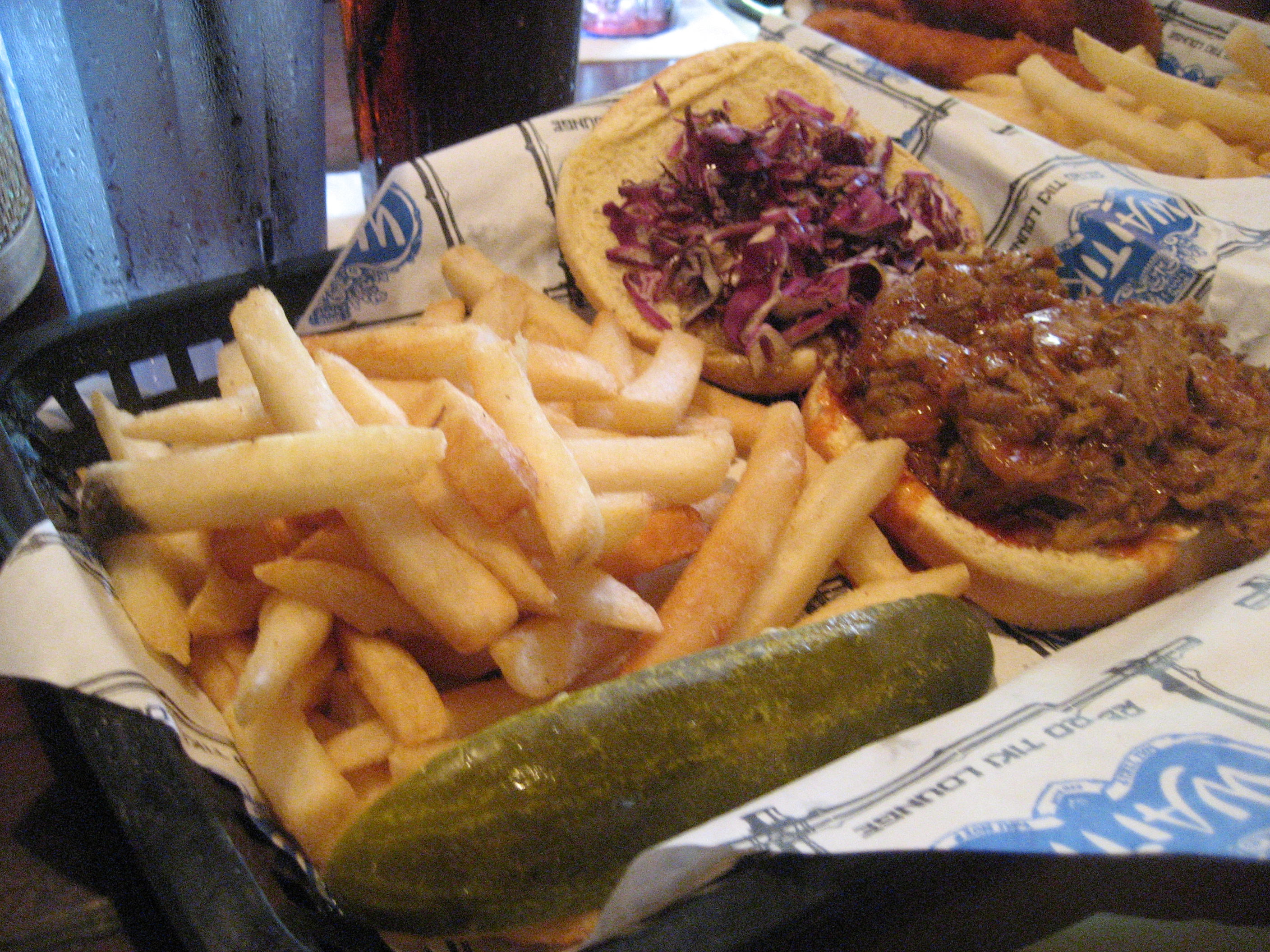 Mr. Baseball chowed down on the half-pound bacon “Kobe” burger ($14) minus the sun-dried tomato aioli. He tried to pass the coleslaw slide to me, but I wasn’t too jazzed by it.